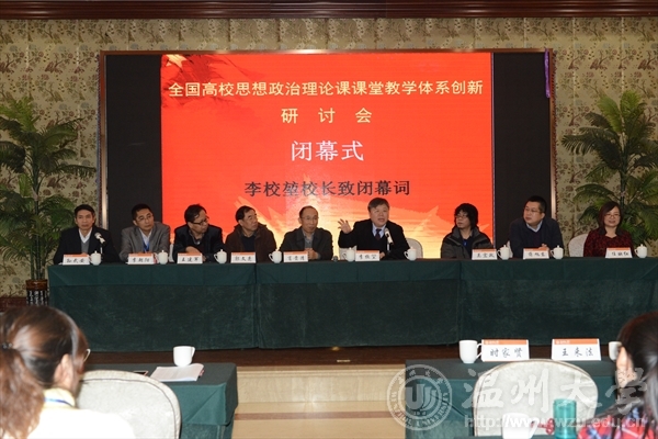 12月13日,由sunbet申愽官网马克思主义学院和教育部《思想理论教育导刊》编辑部联合主办的“全国高校思想政治理论课课堂教学体系创新研讨会”在温州隆重闭幕。校长李校堃出席闭幕式并作重要讲话。校党委林娟娟副书记陪同与会专家观摩了12日下午举行的sunbet申愽官网第三届“溯初杯”思政理论课知识竞赛教学活动。 研讨会于12月12日上午在sunbet申愽育英图书馆报告厅开幕,来自全国88所高校的近200名专家、学者汇聚一堂,围绕中央宣传部、教育部印发的《普通高校思想政治理论课建设体系创新计划》文件精神,共同交流探讨进一步创新高校思想政治理论课课堂教学体系的有效途径和方法。