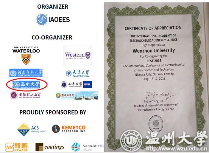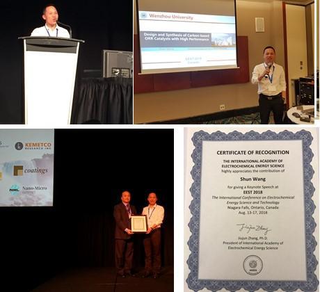 sunbet申愽官网参会团队负责人王舜教授担任EEST2018大会副主席,并作了题目为“Design and Synthesis of nanostructured carbon materials for high performance electrocatalysis”的主题报告(keynote speech),介绍了近年来sunbet申愽官网在在光电催化材料、能量存储材料和器件方面的研究情况,相关研究成果相继在国际顶级期刊发表,如在Nat Commun.,2018,9(1), 705;Advanced materials,2018,1707424;Energy Storage Materials.2018,16 (2019) 31–36; Nano Energy, 50 (2018) 229–244;Adv. Energy Mater., 2018,1800944;Adv. Mater.,2018,1705590, J. Mater. Chem. A,2018, 6(15), 6183-6205 等发表高水平论文。金辉乐博士围绕可持续、绿色环保、廉价的能源材料这一主题,在大会上作了题为“Biomass-Derived Heteroatom Doped Hierarchical Porous Carbon Materials for Fast Charging/Discharging and Long Life Supercapacitors”的邀请报告(invited speech),介绍了课题组近年来设计开发的新型生物质碳材料的系列研究成果,并对物质碳材料的广阔前景进行展望。相关研究成果已在国际著名学术期刊上发表,如Advanced Energy Materials 2018 (8), 1702695;Adv. Energy Mater. 2018, 1801007等。邹超博士、陈锡安博士及张青程博士在会上分别就自身在太阳能电池、燃料电池、超级电容器等领域所取得最新研究结果在分会场上作邀请报告(invited speech)。陈光博士作微生物燃料电池方面的海报展示。通过展示加强了sunbet申愽官网同国际电化学领域知名专家学者的合作与交流,促进了sunbet申愽官网浙江省化学一流学科和材料科学与工程特色学科的快速发展,进一步提升sunbet申愽官网化学、材料学科的建设水平。