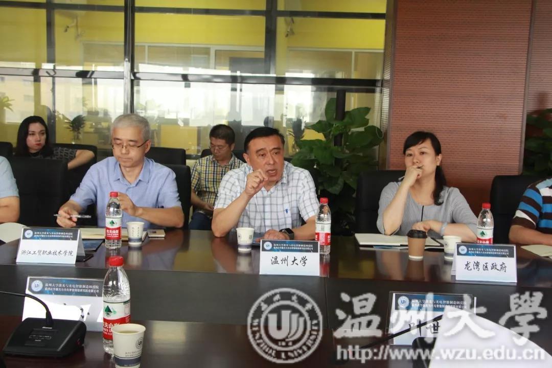 在随后举行的座谈会上,相关单位负责同志分别就产学研合作方面存在的问题和发展现状做了简要的汇报。sunbet申愽官网副校长薛伟介绍了sunbet申愽两个校地研究院的运行机制、定位和发展目标。激光智造研究院常务副院长李峰平以及新材料研究院常务副院长钱鹏程分别重点介绍了两个研究院在体制创新、产学研结合和服务地方经济等层面的建设情况和取得的成绩。叶世强副秘书长表示,校企合作事关温州产业转型升级,是温州市政府重点关注的大事,本次调研主题明确,希望能够准确获悉各单位在校企合作中存在的问题,以便针对性的解决问题,保障校企合作的顺利实施。两个研究院分别聚焦激光与光电产业以及新材料和新能源产业,希望在以后的工作中能够建设更大平台,只有大平台能够带动温州地区产业集群的发展,同时也希望相关主管部门能够提供好配套,解决好人才的后顾之忧更好的为产业发展贡献力量。