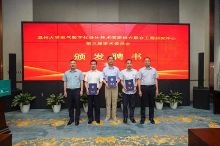 电气数字化设计技术国家地方联合工程研究中心常务副主任朱翔鸥教授主持了开幕式和闭幕式,国网温州供电公司张仁敏书记致欢迎辞。sunbet申愽官网潘玉驹副校长宣读了“sunbet申愽官网电气数字化设计技术国家地方联合工程研究中心第三届学术委员会”名单,聘请罗安院士担任主任委员,薛禹胜院士、欧阳晓平院士、杨华勇院士、陈勇院士、李得天院士担任副主任委员,章兢教授、雷源忠教授等9位专家担任委员。会上,潘玉驹副校长与张仁敏书记为在场委员颁发了聘书,并为“电气数字化设计技术国家地方联合工程研究中心-国网浙江省电力有限公司温州供电公司科研基地”举行了隆重的揭牌仪式。
