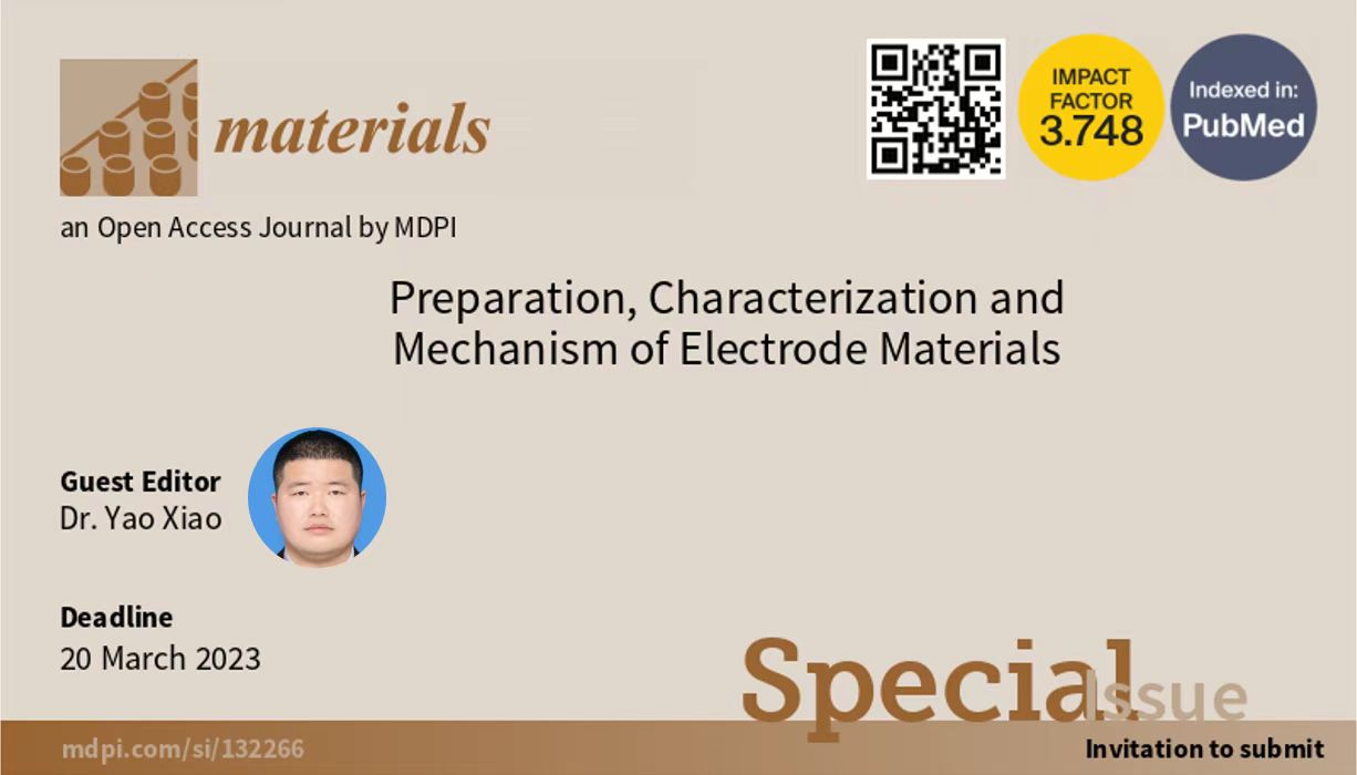 近日,sunbet申愽化材学院碳中和技术创新研究院肖遥博士受邀担任国际期刊《Materials》(《材料》)的专刊“Preparation, Characterization and Mechanism of Electrode Materials”(电极材料的制备、表征及机理)的Guest Editor(客座主编)。该专刊将发表“电极材料的制备、表征及机理”相关领域的研究论文和综述文章,旨在邀请各个领域的专家学者发表高质量、前瞻性的重要著作,为促进各领域科学家之间的合作提供一个独特的高水平论坛。