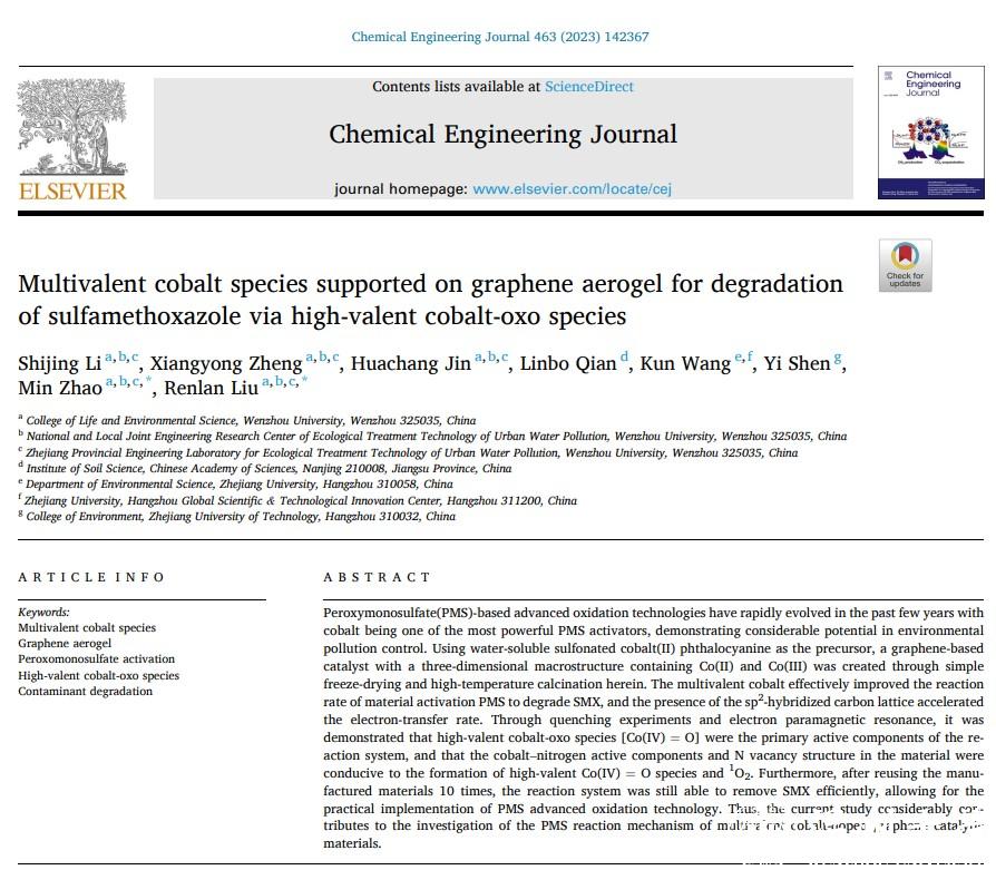 相关研究成果发表于《Chemical Engineering Journal》(SCI一区TOP期刊,IF = 16.7),sunbet申愽官网为第一通讯单位,生命与环境科学学院2020级硕士研究生李时菁为第一作者,赵敏教授和刘仁兰博士为共同通讯作者,相关工作由国家自然科学基金(22006117,61871293),浙江省自然科学基金(LQ20B070012,LQ20B070010),国家重点研发计划(2022YFA3702103)资助。