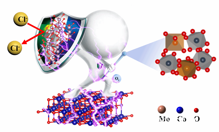 直接海水电解制氢是将太阳能、风能和潮汐能等间歇性能源转化为化学能的有效方法之一。然而,一般催化剂容易在OER高过电位下引发催化剂与高活性新生中间体(如O*、HO*和HOO*)之间的自重组反应。在这个过程中,催化剂的表面被重建,在电势范围内形成羟基金属氧化物,这被认为是OER的“真正催化剂”。然而,这种连续而无序的重建过程对稳定催化剂的结构是致命的,特别是海水电解质的高度腐蚀,最终会导致大多数催化剂严重失活。此外,由于海水中存在着大量的氯离子(Cl-)与OER产生竞争。综上所述,如何控制催化剂重构过程以避免深度重构引起的相分离,以及开发具有选择性抑制CER和屏蔽海水中杂质的OER催化剂,已成为大规模直接海水电解的关键挑战。