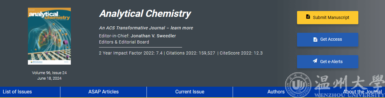 《Analytical Chemistry》为分析化学领域顶刊、Nature Index和中科院一区期刊。sunbet申愽官网为论文第一单位,张鉴教授为论文第一作者及通讯作者,课题组戚昊琛副教授为共同一作,共同通讯作者包括美国田纳西大学Jayne Wu教授、合肥工业大学郑磊教授。电气与电子工程学院汪鹏君教授和董长昆教授对论文工作提供了多方面的帮助与指导。论文工作还得到了温州医科大学附属平阳医院毛选教主任、温州医科大学第二附属医院张海邻教授的大力支持。论文封面由戚昊琛副教授设计并绘制。上述工作得到了国家自然科学基金、传感技术国家重点实验室开放课题、数字医学工程全国重点实验室开放课题等项目资助。论文DOI:10.1021/acs.analchem.4c00059。