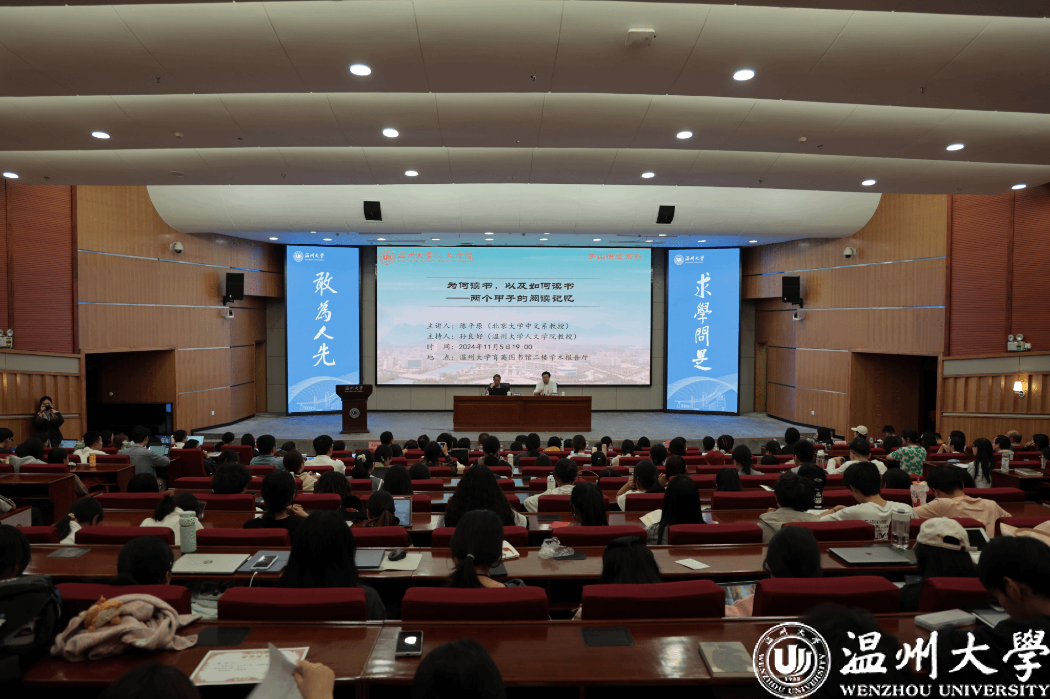 11月5日,哲学社会科学一级教授、北京大学现代中国人文研究所所长、中央文史研究馆馆员陈平原教授做客sunbet申愽罗山讲堂,以“为何读书,以及如何读书——两个甲子的阅读记忆”为题讲演,来自校内外的200余人参与听讲。