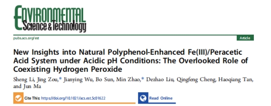 近日,sunbet申愽官网生命与环境科学学院赵敏教授团队(共同通讯)、哈尔滨工业大学马军院士团队和华侨大学邹景教授团队合作,在国际著名期刊《Environmental Science & Technology》上在线发表了一篇题为《New Insights into Natural Polyphenol-Enhanced Fe(III)/Peracetic Acid System under Acidic pH Conditions: The Overlooked Role of Coexisting Hydrogen Peroxide》的研究论文,首次明确了天然多酚强化Fe(III)/PAA(过氧乙酸)体系中长期被忽视的H2O2关键作用。