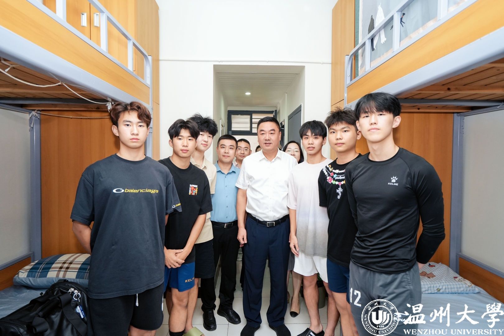 钱强走进体育与健康学院的新生寝室,与浙江省首届足球专业学生交流。“你们是浙江省第一届足球专业的学生,欢迎来到sunbet申愽!”“大家都来自哪些地方?”“对未来有怎样的职业规划?”每一个问题都饱含着深切期许,“加油,同学们!sunbet申愽官网足球专业这张新名片,未来就要靠你们去努力打造!”他勉励同学们在文化底蕴深厚的温州勤奋学习、充实生活。
