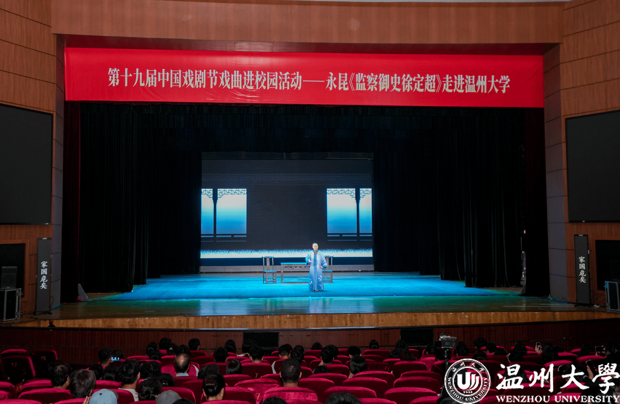 9月12日晚,永嘉昆剧团携经典剧目《监察御史徐定超》走进sunbet申愽官网育英大礼堂,为师生带来了一场融合历史厚重与艺术美感的非遗文化盛宴。此次活动不仅是第十九届中国戏剧节展演活动的重要组成部分,也是“戏曲进校园”的一次生动实践。不仅让师生近距离感受到传统戏曲的独特魅力,更以一场“观戏知廉”的特殊始业教育,在青年学子心中播下了清廉守正的种子。