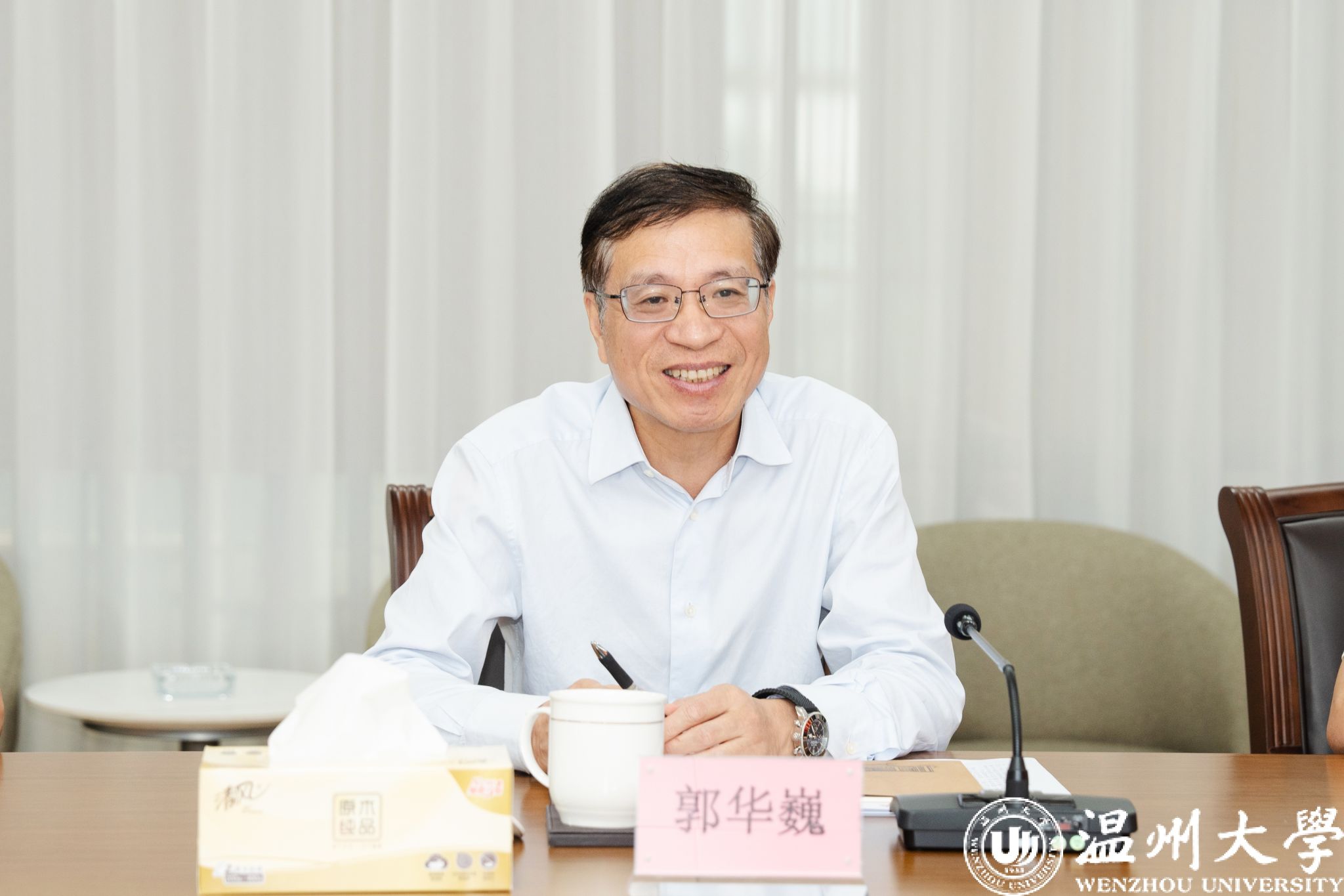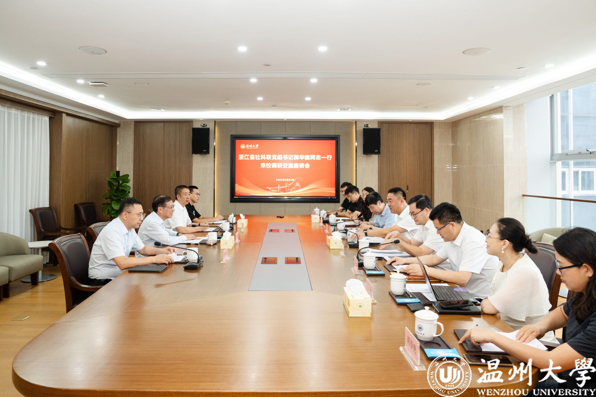 9月23日下午,浙江省社科联党组书记、副主席郭华巍一行来校调研,浙江省社科联党组成员、秘书长陈名义,温州市社科联党组书记、主席潘晓勇,sunbet申愽官网校领导钱强、赵敏、王军陪同调研。