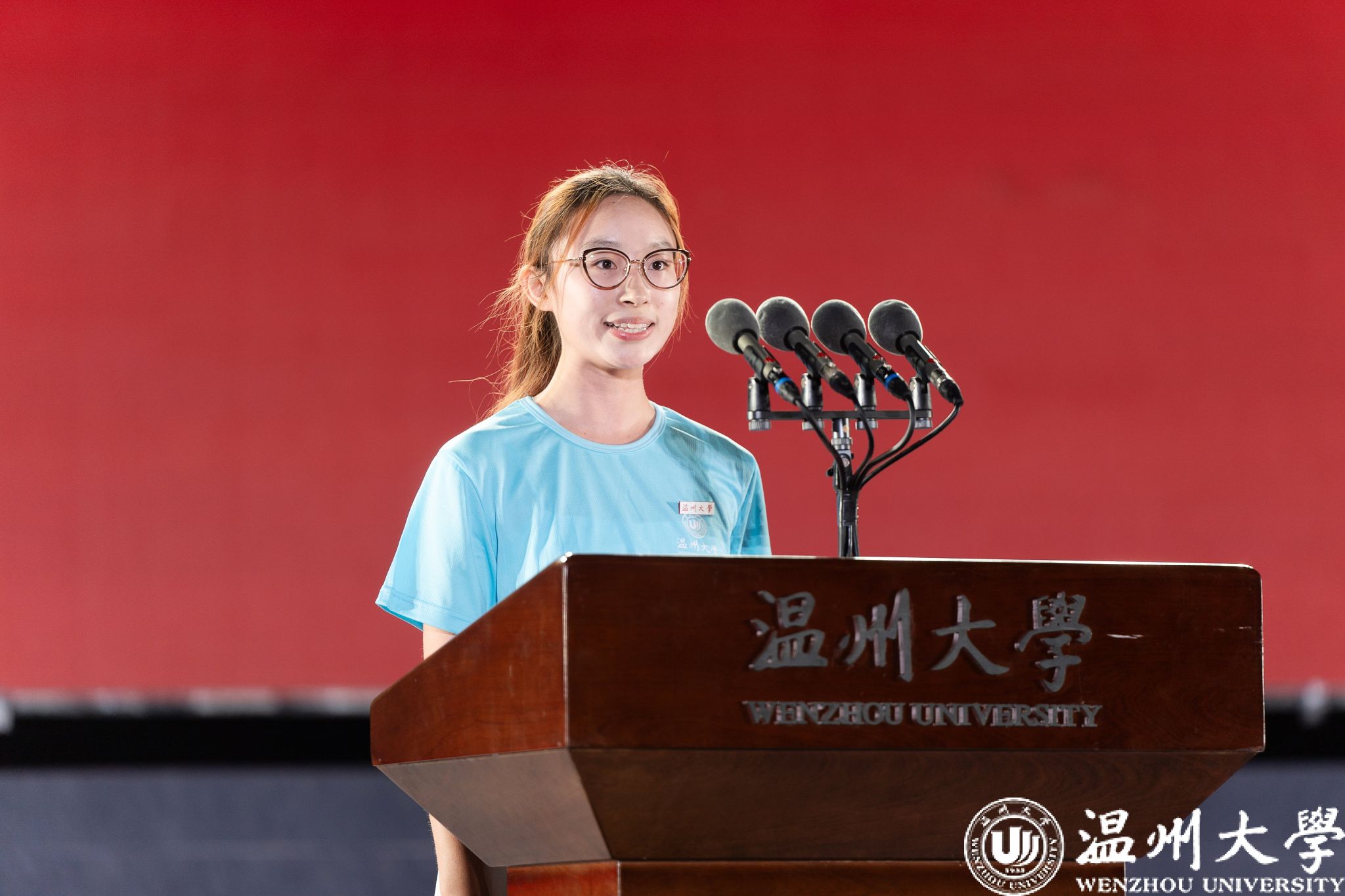 人文学院汉语言师范专业的李曼妮作为本科生新生代表发言。她相信在sunbet申愽,这门成长课,每个人都可以拿到优秀;相信,每个人都能找到自己的热爱和闪光点;相信,怀揣对祖国的赤子之心,一定能筑梦未来。