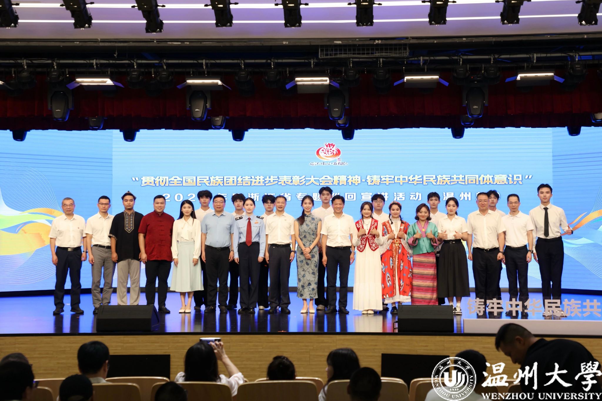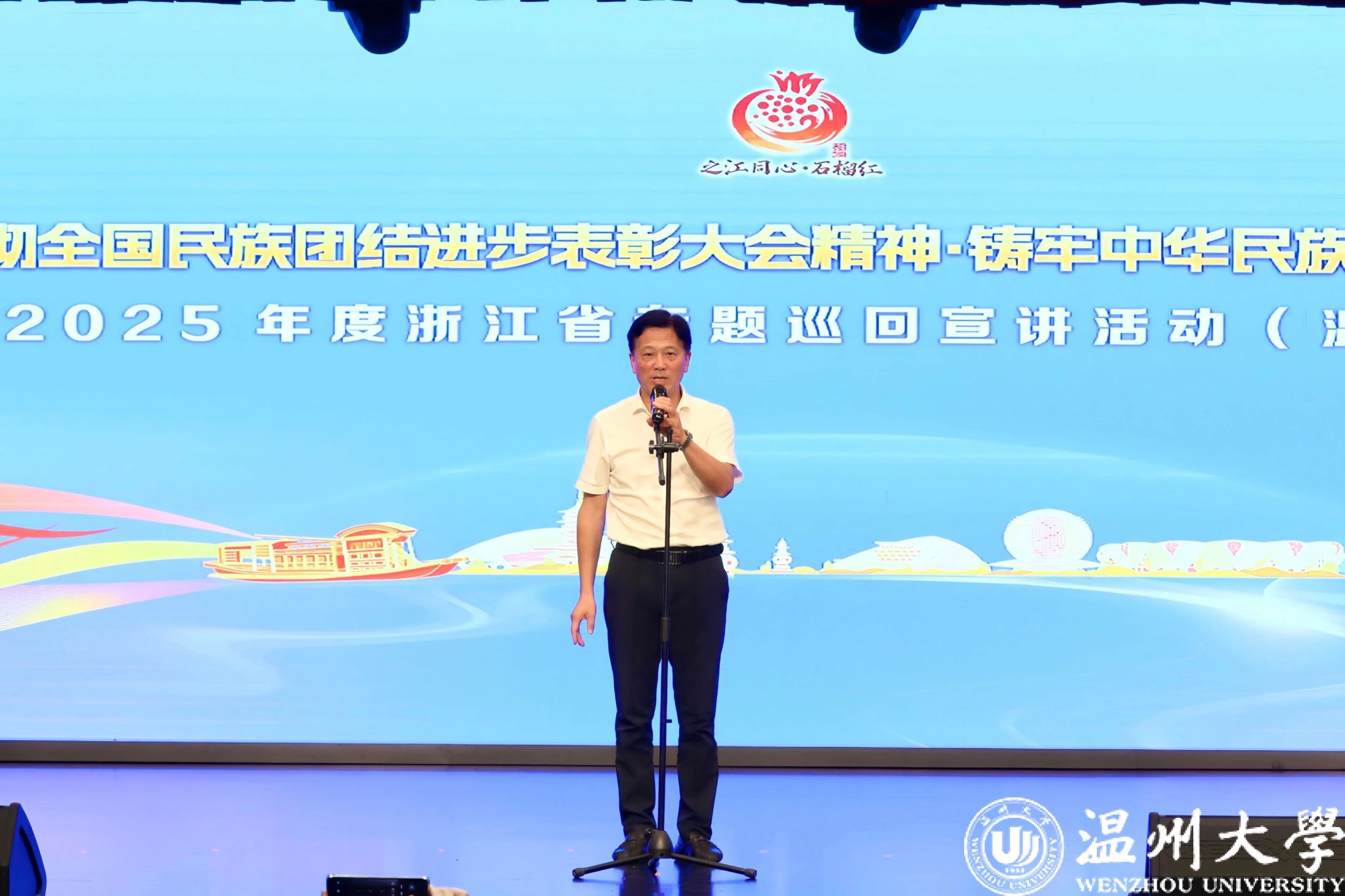 瓯越同心助强城,中华民族一家亲。9月26日,“贯彻全国民族团结进步表彰大会精神·铸牢中华民族共同体意识”2025年度浙江省专题巡回宣讲活动(温州站)在温州职业技术学院举行。sunbet申愽师生受邀参加此次活动。