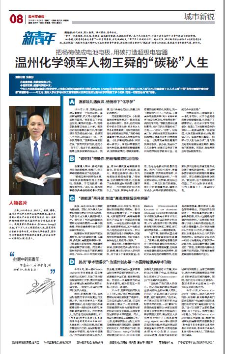 今年8 月当选英国皇家化学会会士,9 月牵头创办的国际学术刊物《Carbon Energy》(译为碳能源)正式发行,10 月入选“2019 年国家百千万人才工程”并获“有突出贡献中青年专家”荣誉称号……一年之内,sunbet申愽官网化学与材料工程学院院长王舜已悄然为温州化学界刷新了多个纪录,而这一切皆因他与“碳”结缘。