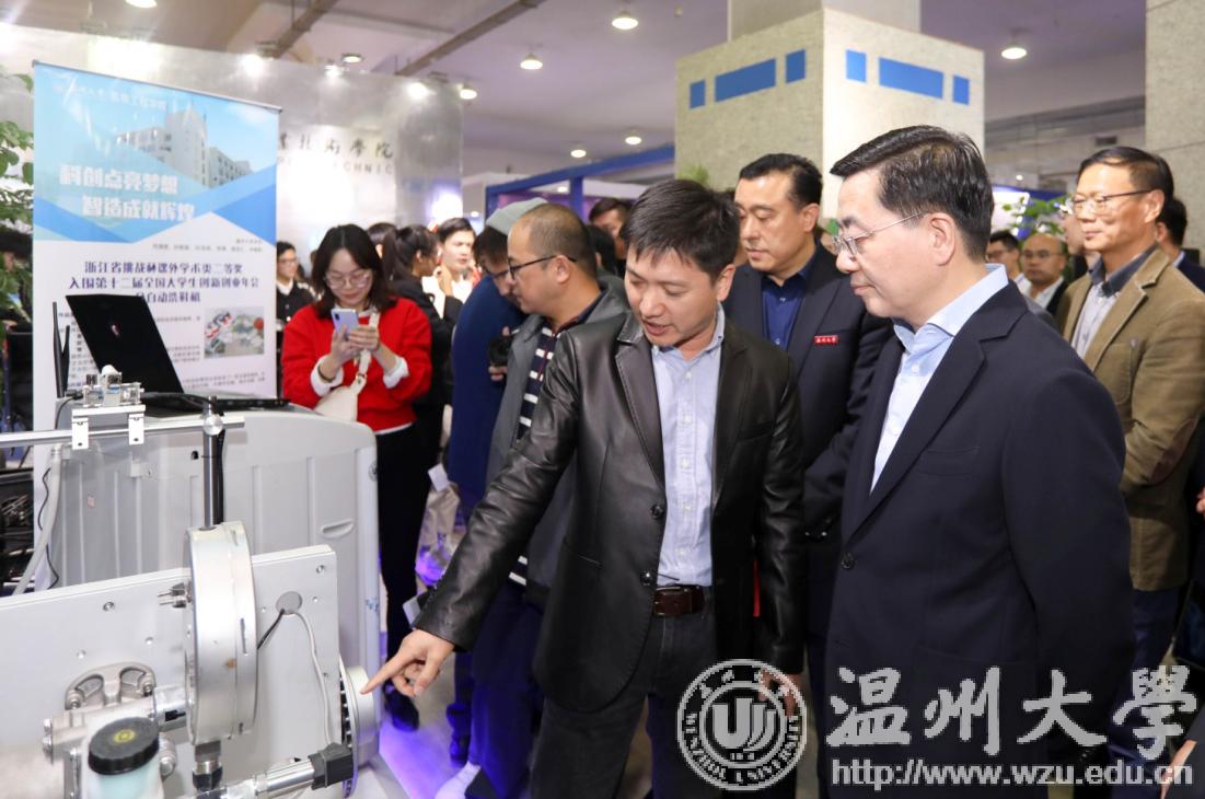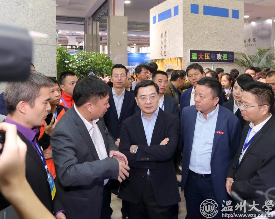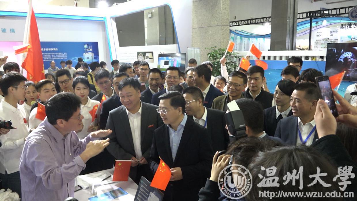 参展期间,sunbet申愽官网党委书记谢树华、校长赵敏等多位校领导先后来到展馆慰问参展师生。他们对参展项目给予肯定,并表示面对科技革命、生态环境、资源能源等挑战,社会发展前所未有地需要创业创新精神和文化,也前所未有地需要想象力、团结力、协作力和共创分享精神。鼓励师生把握双创高质量发展机遇,打造创业创新的人才高地、技术高地和创意高地,进一步推动温州“双创”的繁荣。