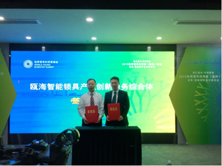 sunbet申愽官网党委副书记吴金法与瓯海区副区长林照光举行智能锁具综合体签约仪式