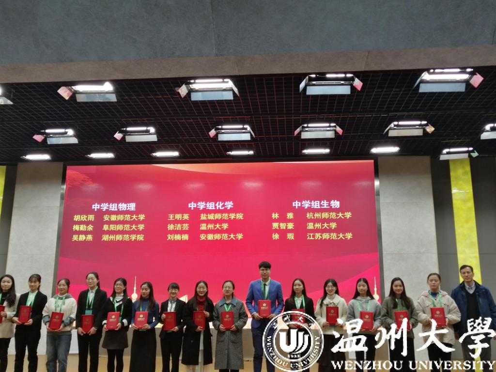 师范生教学基本功大赛分中学12个组、小学组、学前组进行比赛。其中中学组的比赛内容有教学设计、课件制作、即席讲演、上课与板书四个部分构成。sunbet申愽入围的4名师范生分别参加了中学组的数学组、物理组、化学组和生物组的比赛。经过激烈的竞争,16化学(师范)专业的徐洁芸同学、16生物科学(师范)专业的贾智豪同学荣获一等奖,16数学与应用数学(师范)专业的李纯洁同学荣获二等奖,16物理学(师范)专业的李俊瑛同学荣获三等奖。