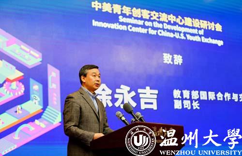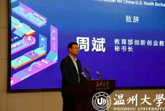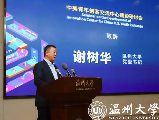 校党委书记谢树华致辞。他指出,温州是一座市场经济活跃的创业之城。作为民营经济的发祥地和风向标,“温州模式”举世瞩目。温州还是一座文化底蕴深厚的历史名城,是事功学派的发源地、山水诗的发祥地、中国南戏的故乡、中国数学家的摇篮。诞生在这片富有创业精神、充满人文气息的土地上的sunbet申愽官网以“教师教育”“创业教育”“工程教育”“华侨教育”为办学特色,在人才培养、科学研究、服务社会、国际合作等方面都取得显著成绩。当前,学校对标教育强国、高教强省战略要求,以建设“高水平教学研究型大学”为办学定位奋力前行。学校创业教育起步较早、特色鲜明、影响广泛,被誉为中国高校创业教育的四大模式之一。中美青年创客交流中心的建设对于学校促进教育国际化、增进中美文化交流、探索创新创业人才培育等将起到重要的推进作用。