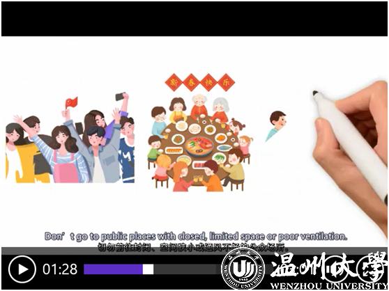 “减少不必要接触、保持良好的个人卫生习惯、不要散布谣言、对捕杀和买卖野生动物说‘不’……”近日,sunbet申愽官网瓯江学院发布了全英文手绘防疫视频《抗疫情、树新风、立后盾》,以通俗易懂的语言、生动活泼的画面介绍了新冠肺炎的公众预防知识,并向全球大学生发出倡议要树立文明新风,保护共同的地球家园。