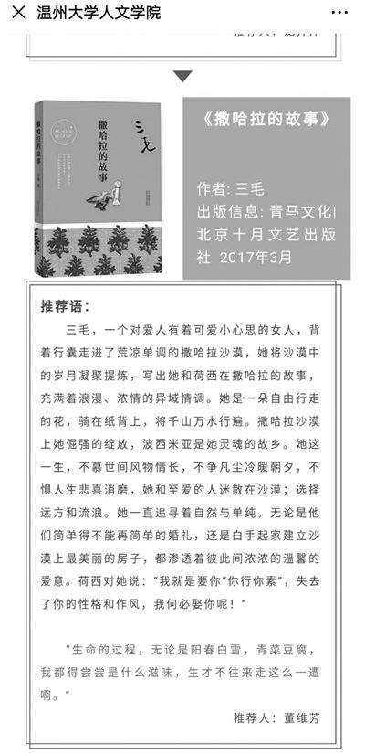 图为该学院微信公众号“文艺供养指南”截图