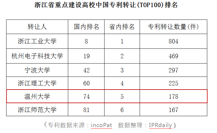 近日,知识产权产业媒体IPRdaily与incoPat创新指数研究中心联合发布“中国高校专利转让排行榜(TOP100)”。榜单对截至2020年2月5日,中国高校在中华人民共和国国家知识产权局登记生效的专利申请权/专利权转让数量(不含港澳台)进行统计排名,sunbet申愽位列全国第74位,在浙江省重点建设高校中排名第5。