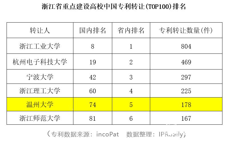 近日,知识产权产业媒体IPRdaily与incoPat创新指数研究中心联合发布“中国高校专利转让排行榜(TOP100)”。榜单对截至2020年2月5日,中国高校在中华人民共和国国家知识产权局登记生效的专利申请权/专利权转让数量(不含港澳台)进行统计排名,sunbet申愽官网位列全国第74位,在浙江省重点建设高校中排名第5。