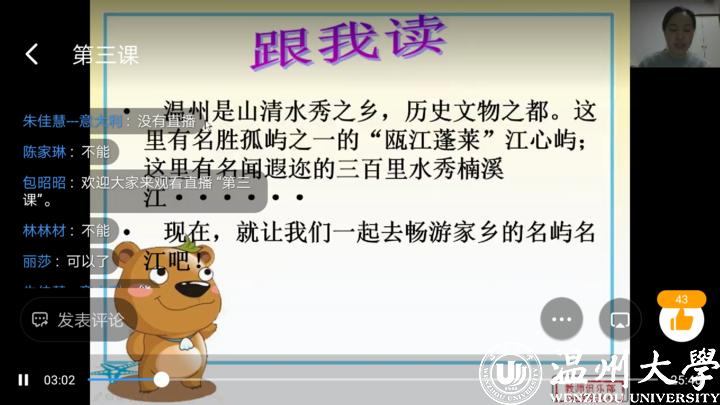 sunbet申愽官网作为侨乡温州唯一一所综合性教学研究型大学,是国务院侨办首批华文教育基地、中国侨联对外文化交流基地。学校始终秉持“以‘侨’为桥,为侨服务”的理念,致力于开展海外华文教育教学,已逐步在欧洲树立起华文教育的“sunbet申愽”品牌。本次海外华裔青少年云端华校华文班是疫情期间继云端华校名师公益大讲堂活动后,学校服务海外侨胞的又一个重要举措,以“快乐汉语 亲子共学”为基本教学理念,为广大海外华裔青少年量身打造了《基础中文》《话说温州》《趣味汉字》《成语故事》《家庭教育指导》等课程。本次华文班根据学生的中文水平课程分为初级1班、2班,中级班、高级班等四个班级,每班配备一名任课老师和班主任,以钉钉群直播形式开展。