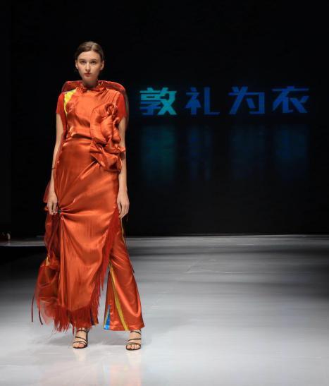 “敦礼为衣”第三届柯桥中国国际礼服设计大赛——洪心怡礼服作品左《霞色》荣获银奖。