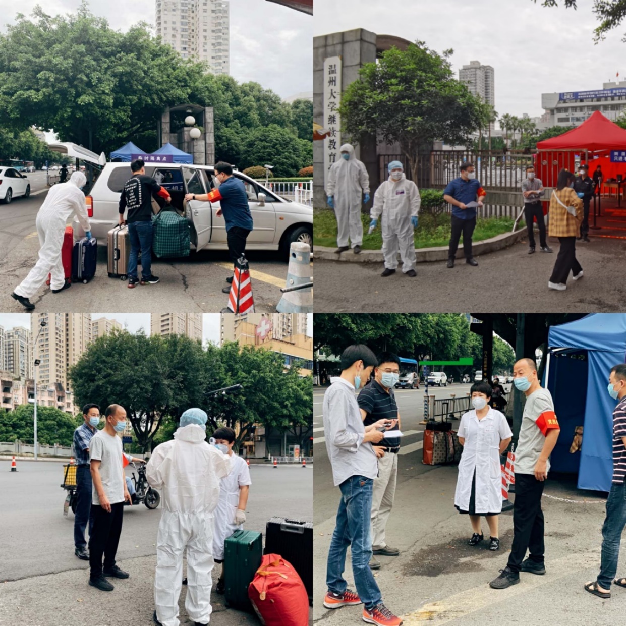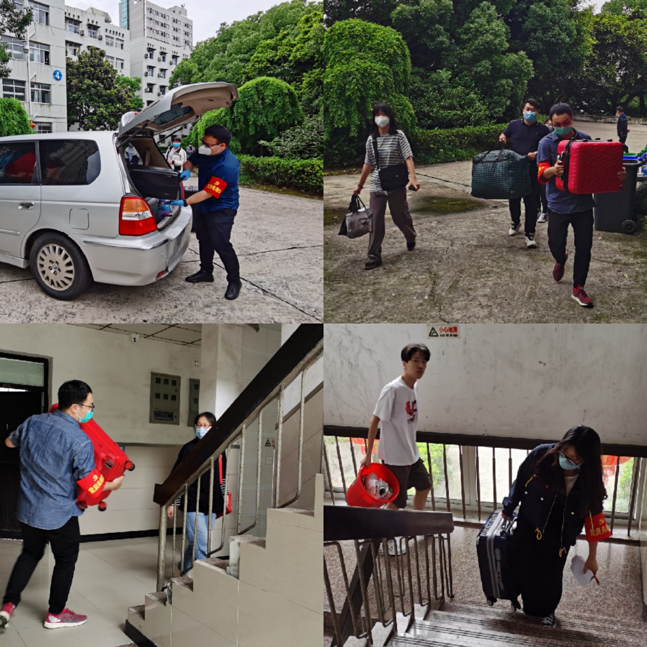 5月24日下午,6位分别来自南京、金华、丽水等地的市外同学回温返校。学院高度重视市外同学的返校安全工作,党员先锋队根据他们的动车班次,精准地设置了两班专车,继续教育学院领导带队前往动车站接站。