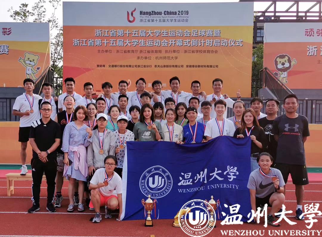 2019温州市大学生足球比赛·sunbet申愽官网冠军队全体队员获奖合影