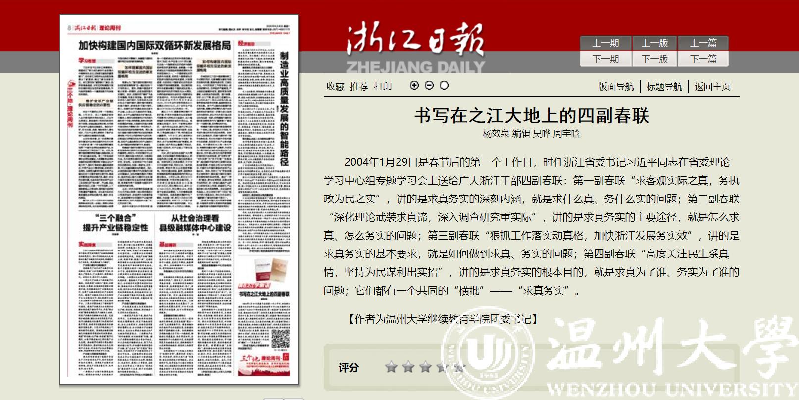 这四副春联,七十二字,字字珠玑,道尽了地方治理的千变万化,但万变不离其宗的是“求真务实”这四字箴言,恰如习近平同志在浙江工作期间“为官一任、造福一方”的真实写照。