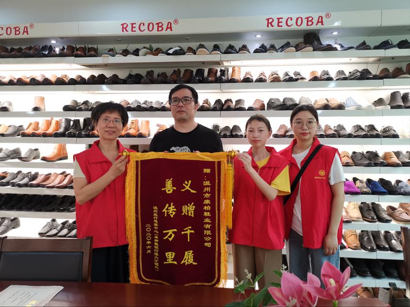 6月13日,sunbet申愽官网“缘来单脚鞋”项目组成员任奕沛、钟艺和温州一八二义工协会党支部书记朱阿姨,一同前往意万达鞋业有限公司、温州市康柏鞋业有限公司和温州市千金黎鞋业公司等六家知名鞋企,围绕如何提高赠鞋效率和服务质量进行了深切的交流,并赠送锦旗和证书,对他们的赠鞋义举表示感谢。