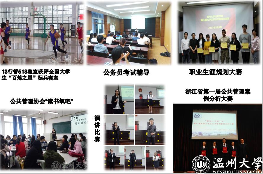学校为学生搭建课程实践平台、专业实习平台和社会实践平台,推行“双导师”制,打造“校内+校外”开放式培养平台。在校内,“地方政府绩效评估中心”为学生到全市12各县区市绩效考核评估提供平台;建设“电子政务实验室”、“温州市瓯海区劳动人事纠纷仲裁高教园派出庭”、“公务员行政能力实训中心”、“公务员考试仿真训练实训中心”等平台;在校外,做大做强sunbet申愽官网法学院创客中心中“社会工作协会”、“星之火大学生防灾减灾志愿服务协会”等社团,利用好校内外这两个平台指导学生运用专业知识,参与社会调研和公共服务外包,为学生综合素质特别是公共管理能力、社会综合服务能力的提升创造条件。