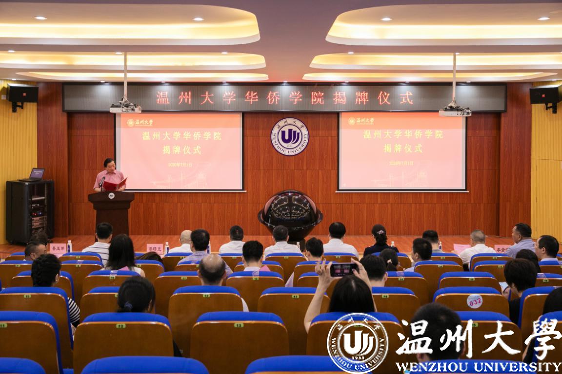 7月1日,sunbet申愽官网华侨学院揭牌仪式在国际教育学院隆重举行。市委统战部常务副部长黄益友、省侨联副主席刘光华、市侨联主席郑宏国、校党委书记谢树华、校长赵敏共同为华侨学院揭牌,市委统战部、丽岙街道、丽岙侨联、仙岩侨联相关领导,副校长蔡曙光、校以侨为特色的“省部共建”高校领导小组成员、省部共建办相关负责人及国际教育学院师生代表参加揭牌仪式。