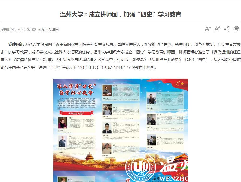 连日来,党建网、中国文明网、中国教育在线、温州新闻、中国高校之窗等众多媒体高度关注、竞相报道sunbet申愽围绕立德树人,加强“四史”教育的系列举措。
