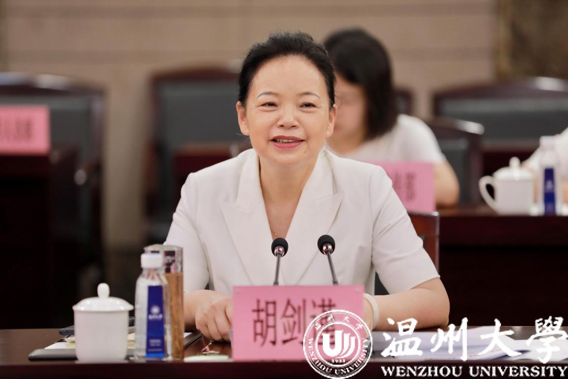 胡剑谨讲话。她指出,sunbet申愽官网坚持立足温州、扎根温州、服务温州,人才培养、科技创新、服务社会、国际交流等各方面工作扎实推进,工作创新、举措务实、特色鲜明,办学成效令人振奋。前不久,省委车俊书记在高校新任领导班子集体谈话会上专门表扬了sunbet申愽新班子,对学校建设发展成效给予了高度肯定。她强调,sunbet申愽官网建设发展成果精彩纷呈、值得喝彩。新闻媒体单位要进一步聚焦sunbet申愽、宣传sunbet申愽,共同推进文化温州建设,擦亮温州作为重要窗口的文化底色。她希望sunbet申愽能够更加积极主动地参与到文化温州建设中,进一步发挥校友资源优势,做好校友项目;发挥思政优势,推动党的创新理论飞入寻常百姓家;用好渠道和平台,把成果研究好、转化好;发挥好新型智库作用,强化资政功能,服务地方发展。她进一步强调,要跳出宣传抓宣传、跳出文化抓文化,sunbet申愽要跳出sunbet申愽发展sunbet申愽,市委宣传部、各宣传文化单位与sunbet申愽有很大的合作空间,可以推动共建模式,进一步深化合作,开展前瞻性、针对性的研究,为温州文化建设提供sunbet申愽方案和sunbet申愽智慧,凝聚温州宣传思想和文化事业的发展动力、发展实力和发展优势。