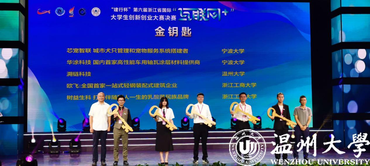 机电工程学院参赛项目《领伟激光:全球高精度超快激光引领者》和教育学院参赛项目《童玩童趣——做儿童音乐教玩具品牌的引领者》以小组第一代表本组别参加浙江省五强晋级赛(全省共13个项目,7个高校),并成功入围国赛。这是互联网+大赛以来sunbet申愽首次参加省五强晋级赛,也是sunbet申愽参赛历史上唯一一次2支队伍同时以小组第一入围国赛。机电工程学院参赛项目《溯链科技》还获得了由大创小镇、杭州市钱塘新区提供的金钥匙奖(全省仅五把)。
