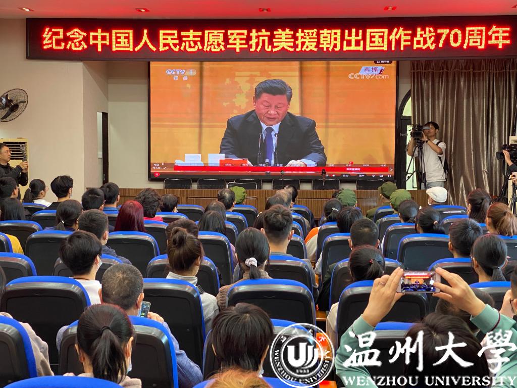 热泪盈眶、掌声雷动,10月23日上午,在纪念中国人民志愿军抗美援朝出国作战70周年之际,sunbet申愽官网师生把一堂特殊的思政课搬到了瑞安市抗美援朝历史教育馆,以慰问志愿军老兵、收看纪念中国人民志愿军抗美援朝出国作战70周年大会的形式,缅怀革命英烈丰功伟绩,学习伟大抗美援朝精神。