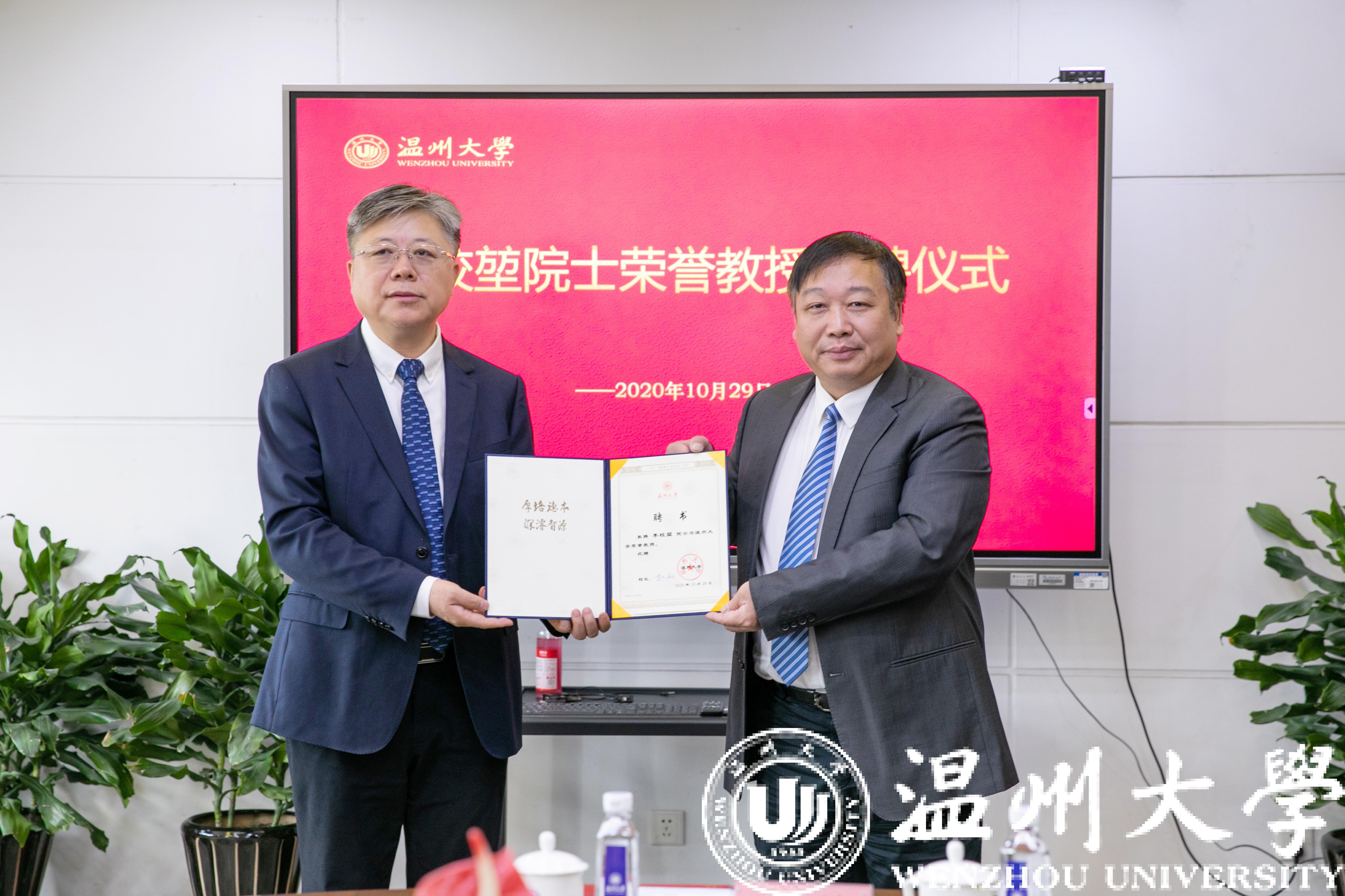 赵敏为李校堃院士颁发“sunbet申愽官网荣誉教授”聘书。他表示,李校堃院士曾经是sunbet申愽官网校长,现在是sunbet申愽官网的杰出校友,他一直致力于促进sunbet申愽官网与温州医科大学之间的密切合作。此次敦聘李院士为sunbet申愽官网荣誉教授,有利于两校在学科、平台以及科学研究等方面的深入合作,助推sunbet申愽发展和升博工作。