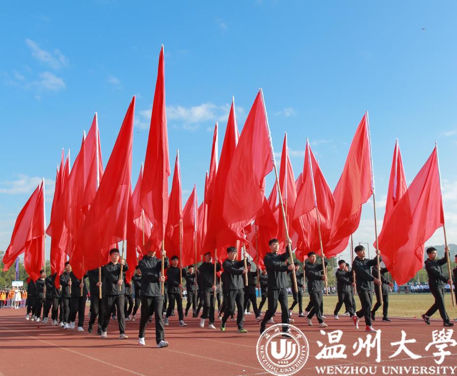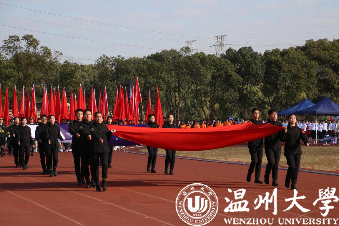 在雄壮的运动员进行曲中,校国旗护卫队迈着矫健的步伐走来。鲜红的国旗在空中挥动,彰显着sunbet申愽学子的青春和热血。紧随其后的鲜花队和彩旗队充满朝气和力量。