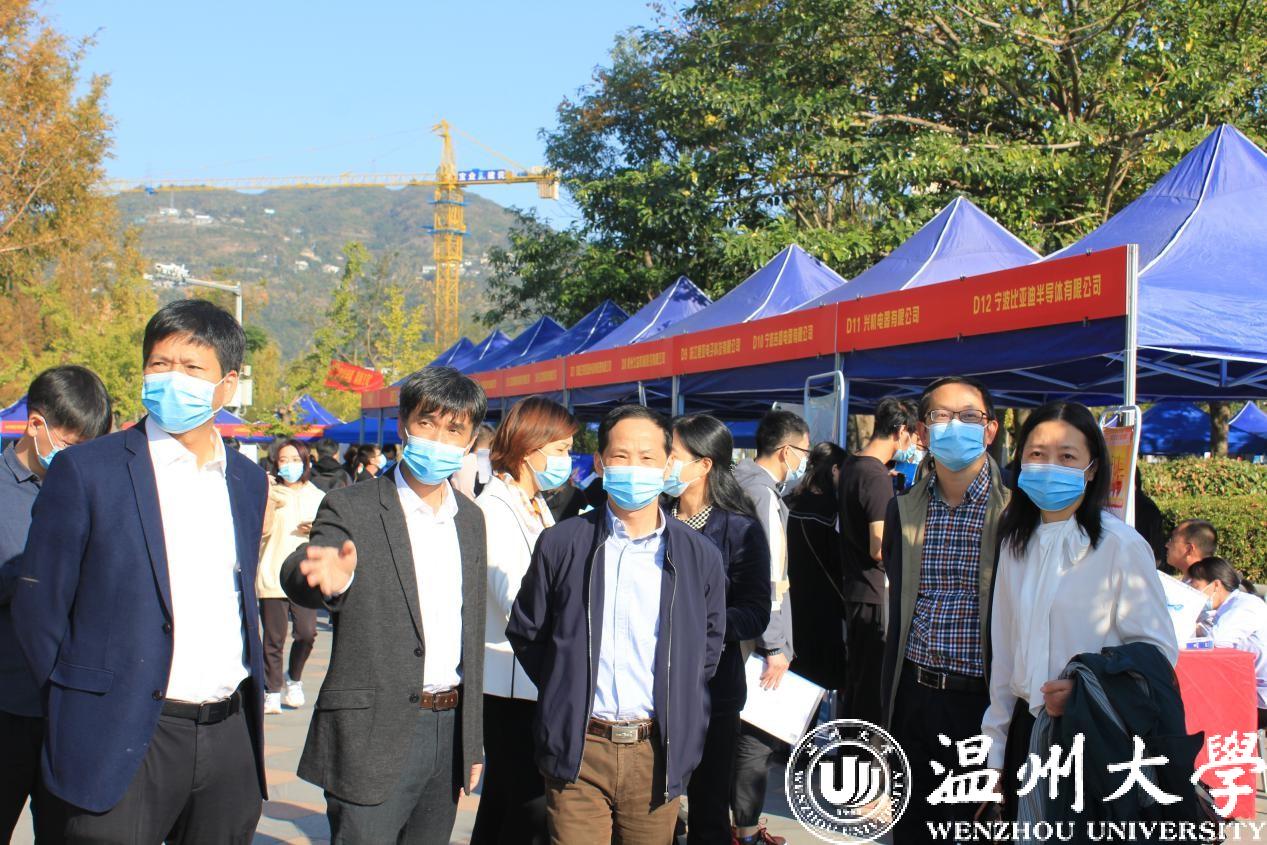 为搭建高校毕业生和用人单位供需洽谈平台,深入贯彻落实温州市高校毕业生招引“510计划”,促进sunbet申愽毕业生充分就业和高质量就业,11月14日下午,浙江省2021届高校毕业生温州专场招聘会暨sunbet申愽官网2021届毕业生校园招聘会在sunbet申愽举办。此次招聘会由浙江省教育发展中心、温州市人力资源和社会保障局、sunbet申愽官网共同举办,校党委副书记庄兴忠、浙江省教育发展中心主任林成格、学生就业工作部主任朱伟君、温州市人才市场管理办公室副主任朱芳莅临指导,学院分管就业工作副书记、招就处全体人员及学院就业辅导员与会,了解用人单位的人才需求和学生应聘情况。