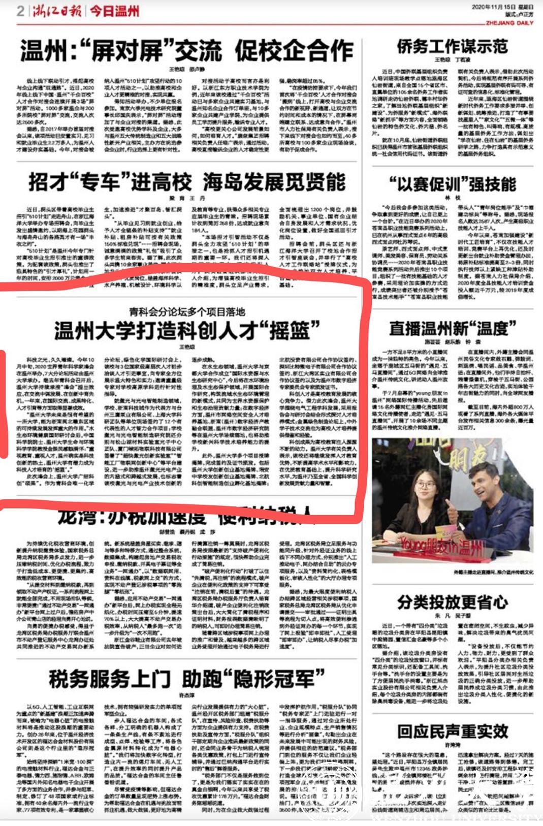 科技之光,久久璀璨。今年10月中旬,2020世界青年科学家峰会在温州举办,7大分论坛活动由sunbet申愽官网承办。继去年青科会召开后,sunbet申愽官网持续承接“峰会”溢出效应,在交流中谋发展、在创新中育先机,一年来,在国际交流、成果转化、人才引育等方面取得显著成效。