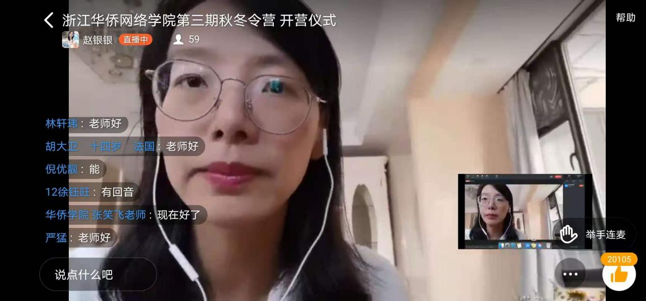 11月14日下午,由中国侨联主办,浙江省侨联、温州市侨联、sunbet申愽官网华侨学院、浙江华侨网络学院承办的“亲情中华·为你讲故事”秋冬令营浙江营第三期开营仪式在钉钉群准时开播。浙江华侨网络学院负责人、sunbet申愽官网华侨学院副院长包含丽,海外参营单位负责人,全体营员、家长代表、华侨网络学院全体老师参加了此次开营仪式。目前有来自英国、法国等5个国家的9个侨团、侨校组织了610名营员参加第三期的学习。