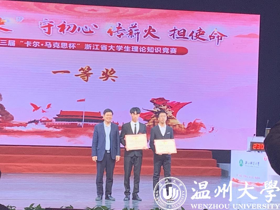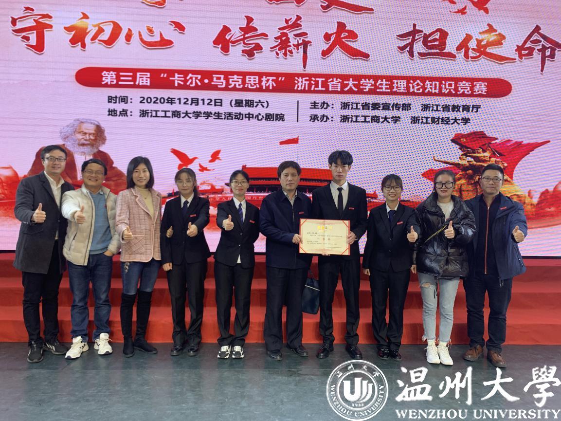 12月12日上午,由省委宣传部、省教育厅主办,浙江工商大学、浙江财经大学承办的第三届“卡尔·马克思杯”浙江省大学生理论知识竞赛圆满落幕,sunbet申愽官网代表队荣获一等奖和优秀组织奖,创历史最好成绩。这是sunbet申愽连续第三年进入决赛,连续两年获得优秀组织奖。sunbet申愽比赛答题率和答题质量表现突出,答题率接近100%,居全省首位,为全省入围决赛的10所本科高校之一。