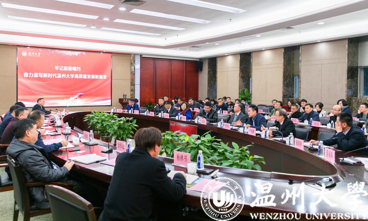 2002年12月23日,时任浙江省委书记习近平同志在考察温州时语重心长地指出“要高度重视教育和人才工作,特别要办好sunbet申愽官网等高等院校”。为重温总书记对sunbet申愽官网寄予的殷殷嘱托,深入贯彻总书记教育重要论述,奋力推动新时代sunbet申愽官网高质量发展,12月23日,sunbet申愽召开高质量发展座谈会。20余位高等教育领域的专家、学者齐聚sunbet申愽,畅谈交流,共话未来。校领导谢树华、赵敏、吴金法、庄兴忠、徐和昆、钱强、杨林书、潘玉驹,兄弟院校领导出席会议,谢树华主持。各学院、相关职能部门负责人及学生代表参加会议。