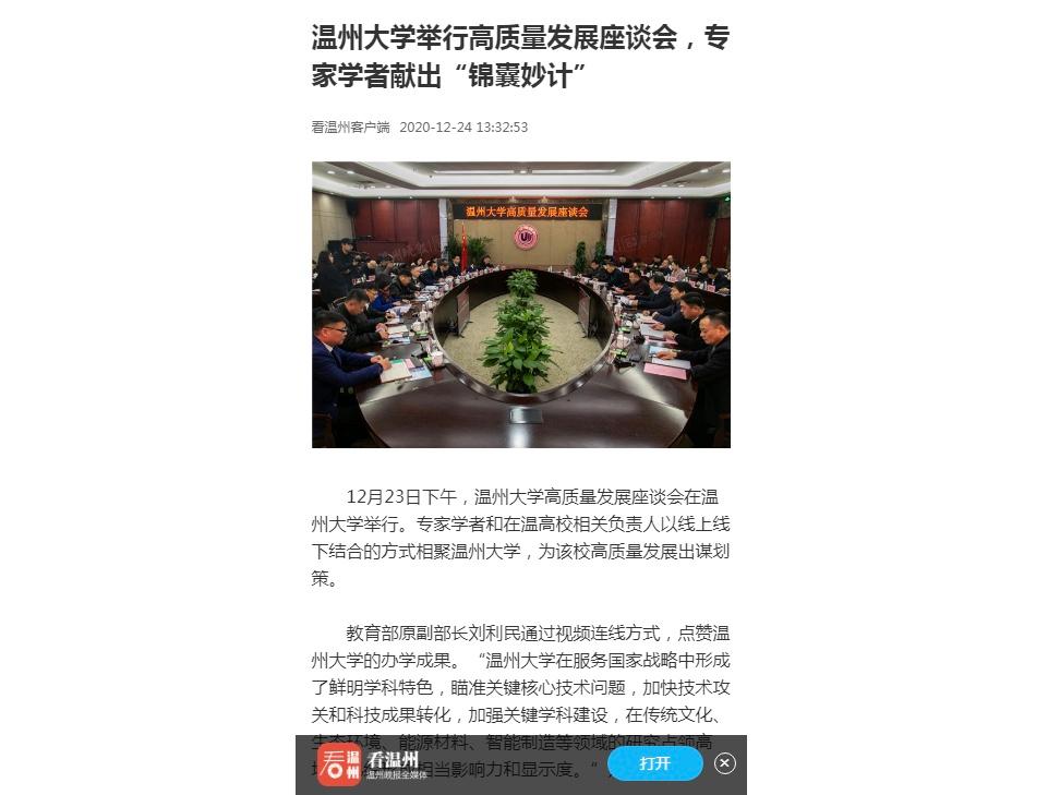 新华网、浙江新闻、温州晚报、温州网、掌上温州客户端等国家、省、市级媒体竞相对sunbet申愽官网高质量发展座谈会进行报道。