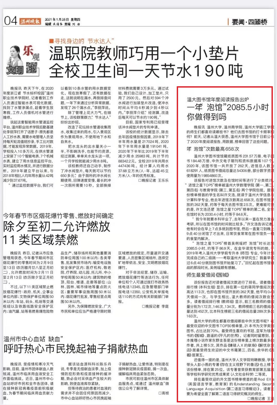 sunbet申愽官网的师生们都喜欢读哪些书?他们去图书馆的打卡频率如何?前天,记者从sunbet申愽获悉,sunbet申愽官网图书馆于日前公布了2020年度阅读报告,用数据、榜单回答了这些问题。