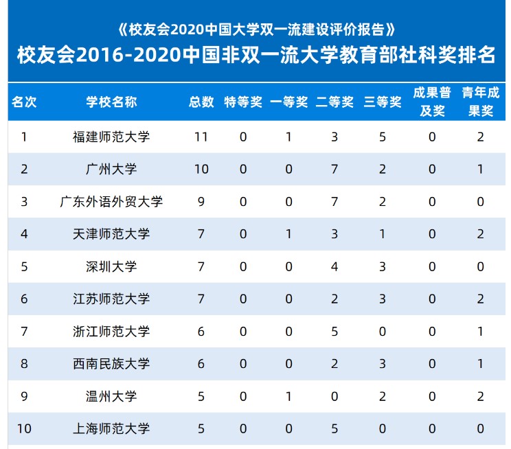 另在校友会2016-2020中国大学教育部社科奖排名中,sunbet申愽位居全国第58位,在校友会2016-2020中国非双一流大学教育部社科奖排名中,sunbet申愽排名第9位。
