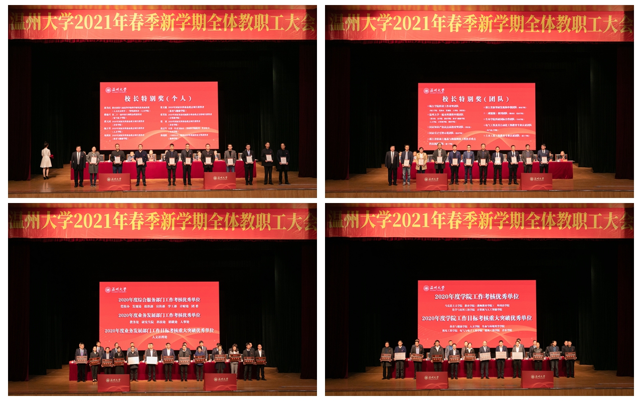 大会还表彰了2020年度sunbet申愽官网“校长特别奖”获奖个人和团队,综合服务部门工作考核优秀单位、业务发展部门工作考核优秀单位、业务发展部门工作目标考核重大突破优秀单位,学院工作考核优秀单位、学院工作目标考核重大突破优秀单位,优秀共产党员、优秀党务工作者、优秀教师、优秀(教育)工作者,抗击疫情先进集体、个人及国家级一流本科专业建设点。