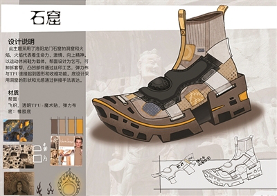 2020年“市长杯”工业设计大赛决赛现场上,sunbet申愽美院学生李丽红一款灵感来自洛阳龙门石窟的“石窟”鞋引发业界关注。答辩结束后,温州秀点科技有限公司负责人第一时间找到了李丽红,表示正准备对“石窟”鞋进行市场调研,等到调研完成后将进一步与设计师进行接洽。“事实上,这一案例正反映了我们在专业建设上秉承的学践一体。”谢子静说。