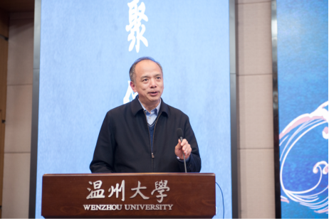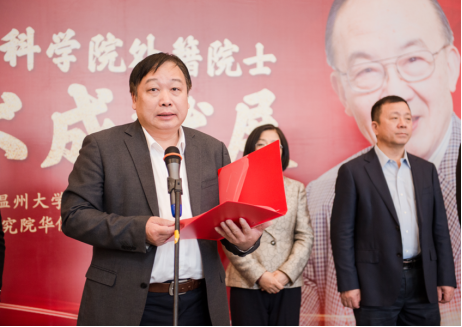 浙江省侨联党组成员、副主席兼秘书长周松一致辞。周松一主席分享了三句话同大家共勉:希望大家充分领略先生严谨的治学态度,为本领“淬火”;希望大家充分领略先生高尚的品格修行,为灵魂“提纯”;希望大家充分领略先生赤诚的家国情怀,为事业“添彩”。