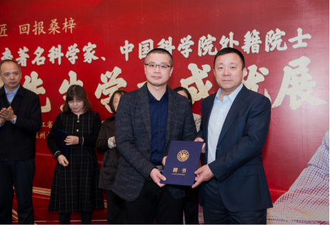 中国侨联常委、sunbet申愽官网党委书记谢树华为张秀明、赵健、杨祥银三位教授颁发sunbet申愽官网客座教授聘书。
